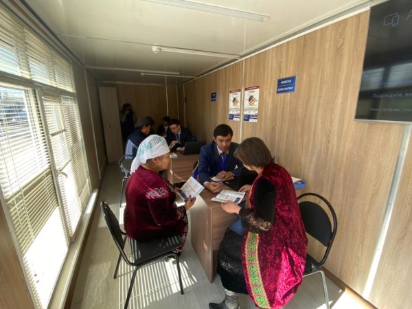Уникальность проекта «Атамекен қолдау орталығы» — это локация. Мобильные центры занятости находятся в местах массового пребывания населения – в селе Кордай в здании «Дом Культуры» и селе Карамекер.