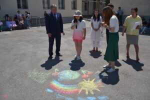 Днем на свежем воздухе для собравшихся ребят проводился конкурс рисования на асфальте «Мир глазами детей», логические игры, викторины и увлекательная экскурсия по департаменту, где они с большим удовольствием принимали активное участие. Около 30 детишек показали свои фантазии, изображая животных, детей, природу и даже космос. Особое настроение создавало и музыкальное сопровождение. Детским песням, звучащим перед зданием, с радостью подпевали и взрослые, и малыши. Получился настоящий семейный праздник, в завершении которого всем участникам были вручены дипломы, подарки и сладости.