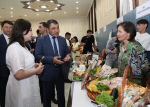 Глава региона пообщался с конкурсантами, ознакомился с продукцией жамбылских предприятий. На ярмарке были представлены продовольственные товары, одежда и обувь, мебель, сувениры, химическая и строительная продукция.