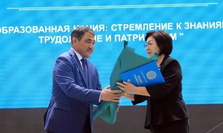 Далее состоялась церемония награждения. Отличившимся педагогам за вклад в развитие сферы образования региона вручили Почетную грамоту акима области и Благодарственное письмо акима области.