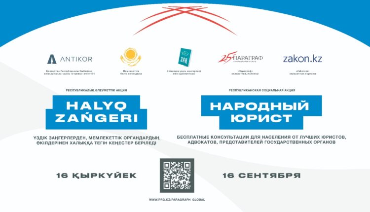 16 сентября в 16:00 часов местного времени во всех крупных городах Казахстана стартует общереспубликанская акция «Народный юрист», сообщает Zhambylnews.