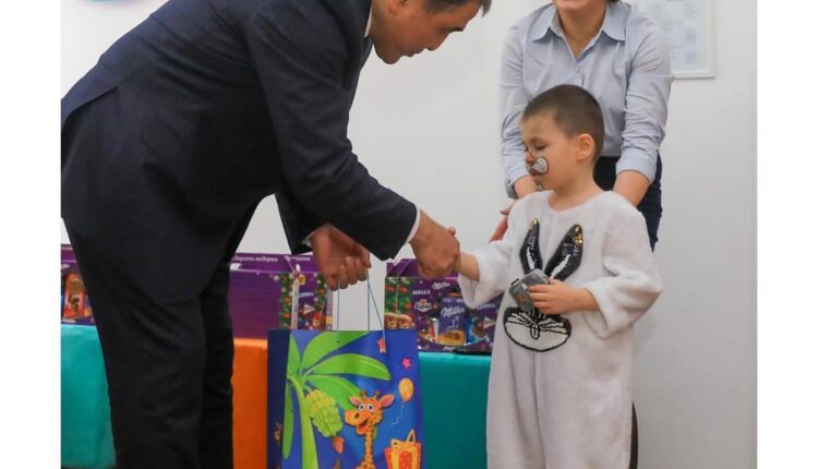 Аким области вручил новогодние подарки детям и поздравил их с наступающим Новым годом.