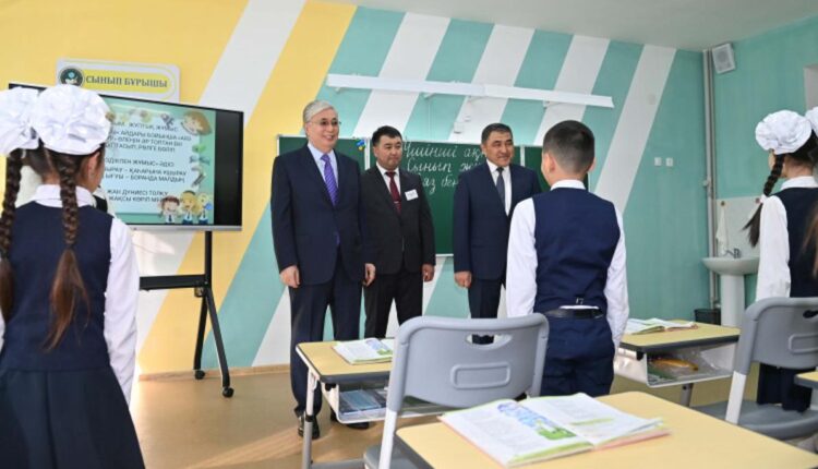 Президент Касым-Жомарт Токаев в ходе рабочей поездки в Жамбылскую область посетил среднюю школу в селе Коктал Байзакского района-, передает сайт akorda.kz.