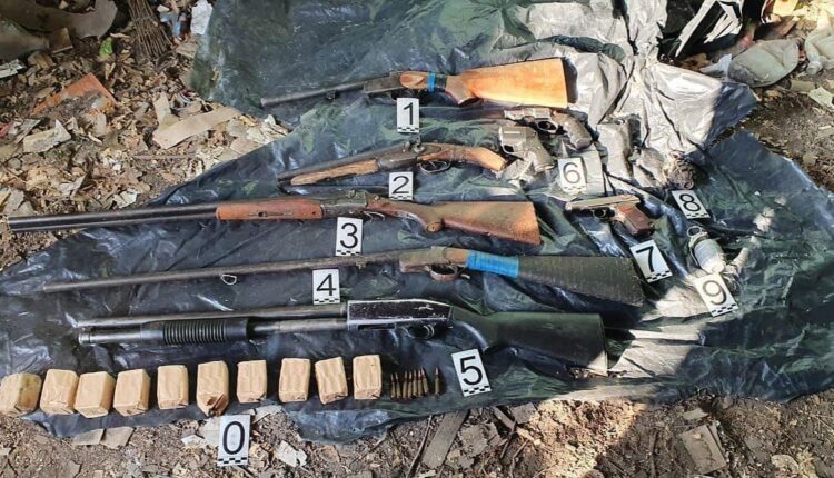 К примеру, при проведении оперативно-розыскных мероприятий на окраине п.Солнечный сотрудники полиции обнаружили полипропиленовый мешок с оружием и боеприпасами. Полицейские изъяли автомат АКС-74 калибра 5,45 мм, похищенный со склада ДП Жамбылской области, двуствольное гладкоствольное охотничье ружье марки «ИЖ-54» калибра 12 мм, одноствольное гладкоствольное охотничье ружье марки «ИЖ-ЗК» калибра 16 мм, одноствольное гладкоствольное охотничье ружье марки «ИЖ-18ЕМ»калибра 16 мм, обрез одноствольного гладкоствольного охотничьего ружья марки «ИЖ-58» калибра 16 мм и 1 противогаз.