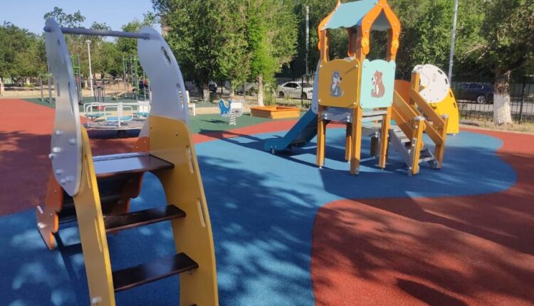 В городе Каратау появилась универсальная спортивная площадка, которая состоит из двух зон — детской площадки и тренажеров/workout.