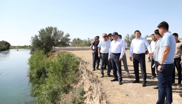 Аким Жамбылской области Нуржан Нуржигитов в Кордайском районе осмотрел канал, построенный в целях решения проблем дефицита поливной воды в селах Сарыбулак, Кайнар. Вода в канал поступает из реки Шу.