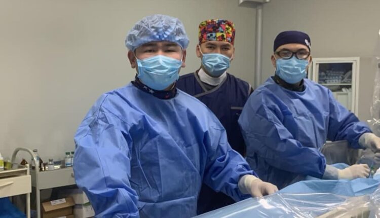 Санавиацией ребенок доставлен в ОПЦ г. Тараз, а затем в НКЦКТ. По результатам КТ сердца и ЭХОКГ, выставлен диагноз — врожденный порок сердца (ВПС): атрезия легочной артерии 2 типа, стеноз обеих легочных ветвей, открытый аортальный проток (ОАП), дефект межжелудочковой перегородки. Консилиумом врачей в составе заведующего детской хирургией Икромом Мухамедовым, интервенционным хирургом Тимуром Сейсембековым, реаниматологом Зафаром Розбаевым, детским кардиологом Юлией Уколовой по жизненным показаниям решено провести эндоскопическое стентирование ОАП, наложение системно-легочного шунта. Операция прошла успешно. Ребенок выписан на десятые сутки после хирургического лечения в удовлетворительном состоянии под наблюдение врача педиатра и кардиолога по месту жительства с дальнейшим динамическим наблюдением в кардиохирургическом центре.