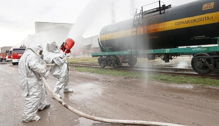 По плану учений, в результате сильного землетрясения на внутризаводских железнодорожных путях произошла разгерметизация цистерн с аммиаком и дизельным топливом, что может повлечь пожар. Поступает сообщение о пострадавших.