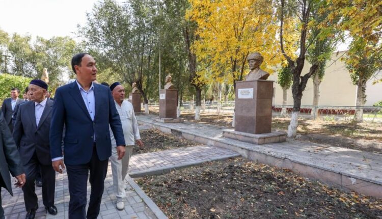 Аким Жамбылской области Ербол Карашукеев в Мойынкумском районе посетил парк Жаз-ата, почтил память дважды Героя Социалистического Труда Жазылбека Куанышбаева.